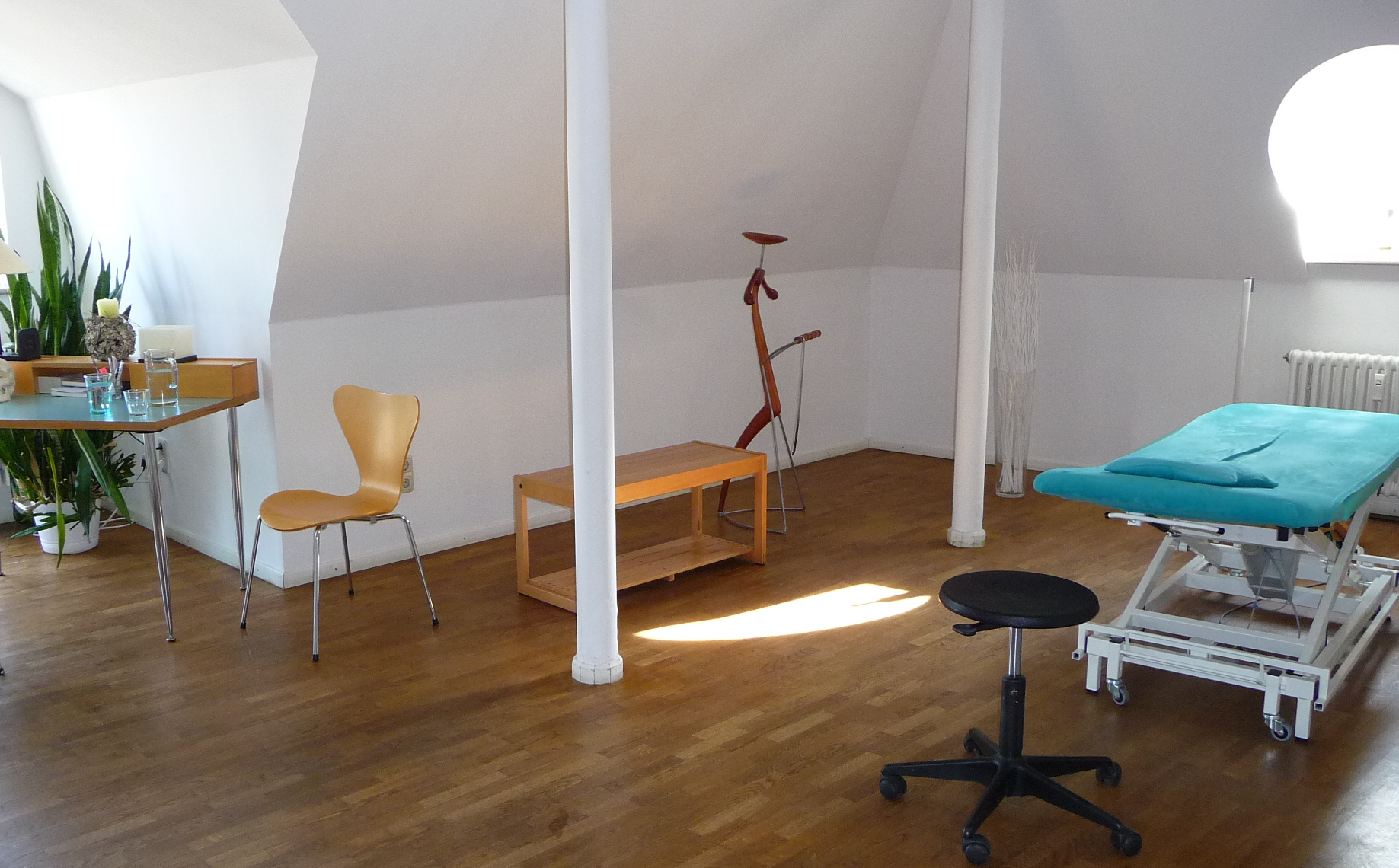 Der großzügige Raum bietet ausreichend Platz für die verschiedenen Therapie- und Trainingsfomen einschließlich Körper-, Yoga- oder Bewegungsübungen.